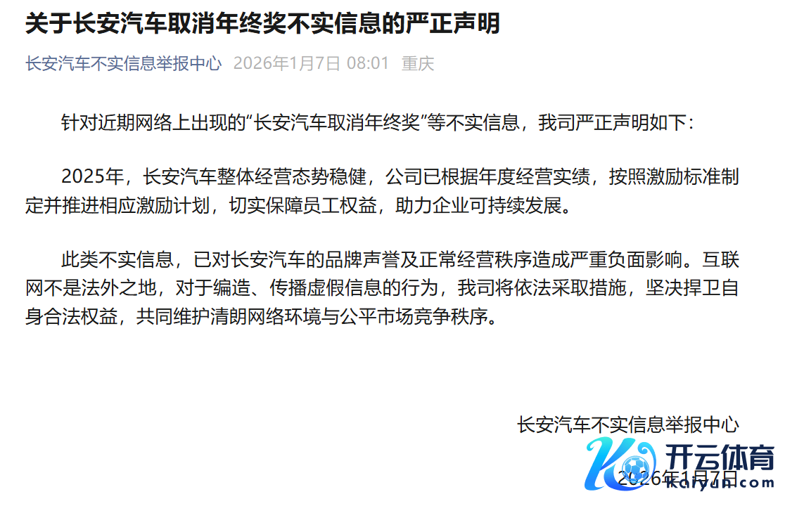 长安汽车:网传“取消年终奖”信息空幻 已激动激发计议保险职工权益长安汽车:网传“取消年终奖”信息空幻 已激动激发计议保险职工权益